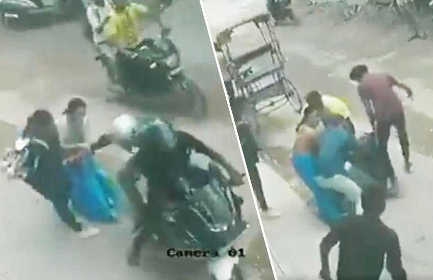 सीसीटीवी फूटेज में देखा जा सकता है कि दिल्ली के बाहरी इलाके नांगलोई में मां-बेटी सड़क पार कर रही हैं। तभी दो बाइक सवार बदमाश आते हैं और उनके गले से चेन खींचने लगते हैं।
