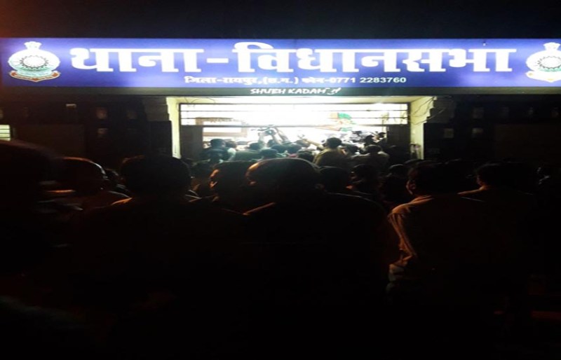 पुलिस प्रशासन और सरकार के खिलाफ जमकर नारेबाजी शुरू कर दी। बाद में पूर्व मुख्यमंत्री डॉक्टर रमन सिंह, विधायक बृजमोहन अग्रवाल, नंदकुमार साय, धरमलाल कौशिक, पुन्नूलाल मोहले आदि थाने पहुंच गए। फिर थाने के पोर्च में ही धरना-प्रदर्शन शुरू कर दिया।
