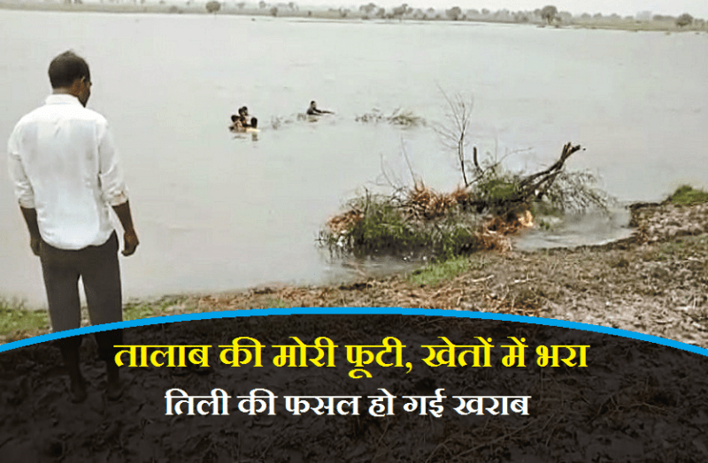 तालाब की मोरी फूटी, खेतों में भरा पानी, तिली की फसल हो गई खराब, देखें वीडियो