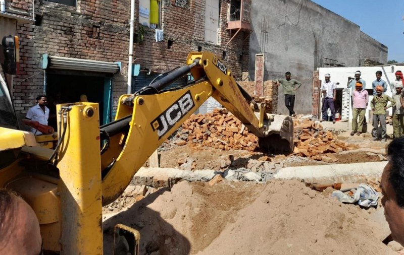 निर्माणाधीन दुकानों को जेसीबी से गिराया