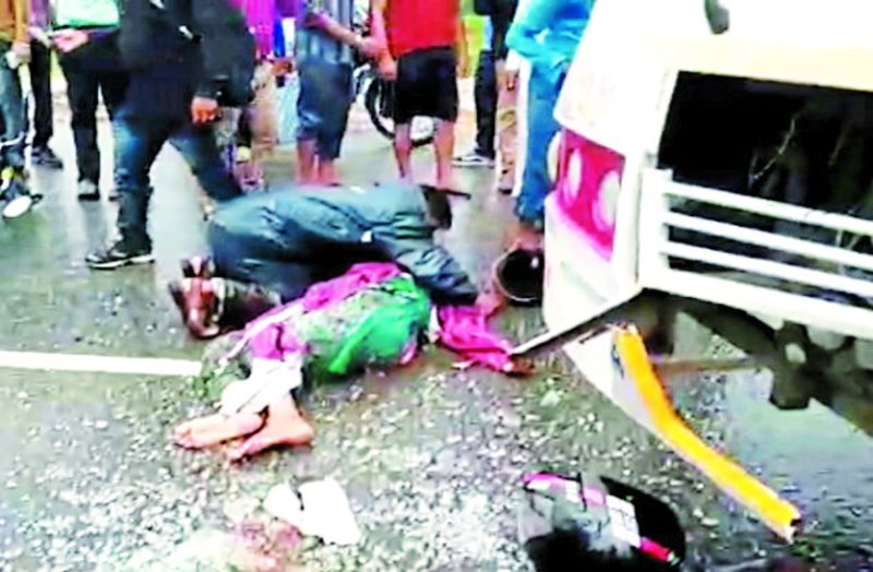 टेकनपुर/डबरा. ग्वालियर -झांसी हाइवे पर जौरासी घाटी में हनुमान मंदिर तिराहे के पास शनिवार की सुबह 9 बजे बाइक सवार शिक्षक दंपती के वाहन को ट्रक व यात्री बस ने ट्रक्कर मार दी। जिससे शिक्षिका की मौत हो गई जबकि पति गंभीर रूप से घायल हो गया। उसे गंभीर हालत में इलाज के लिए ग्वालियर भेजा गया है।