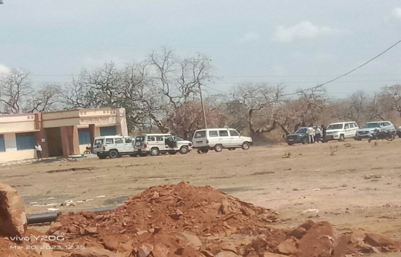 परीक्षा केंद्र के बाहर खड़ी अधिकारियों की गाड़ी