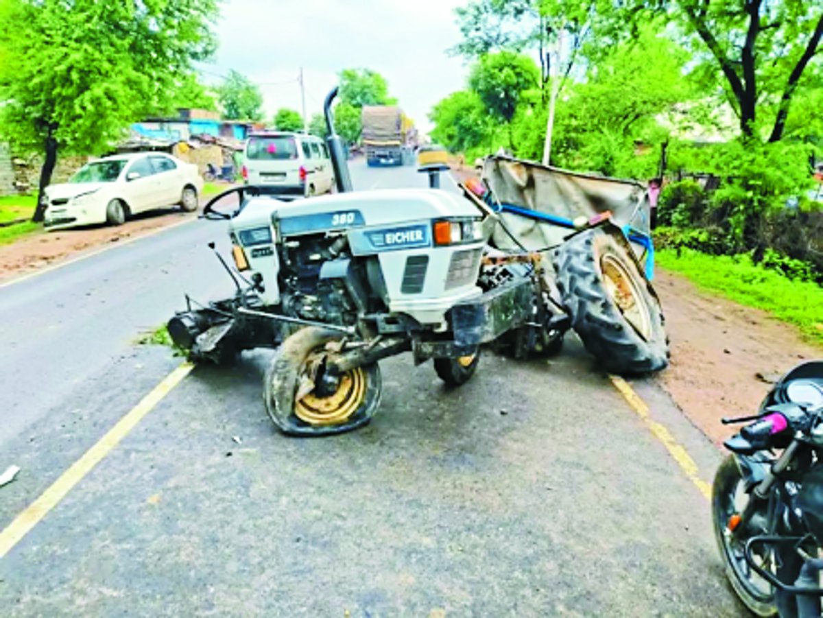 कार व ट्रैक्टर की भिड़ंत, ट्रैक्टर दो टुकड़े हुआ