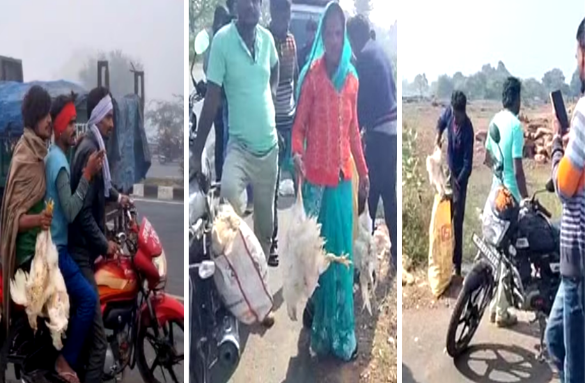 यहां सड़क पर हो गई मुर्गों की लूट, लोग बोरे में भर-भरकर ले गए जिंदा मुर्गे, देखें तस्वीरें