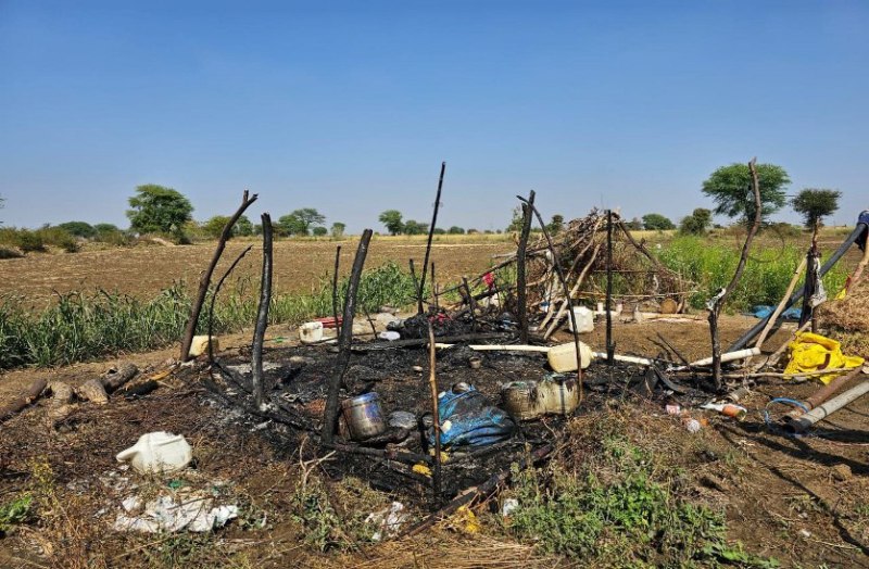 घास से बनी झोपड़ी में लगी आग