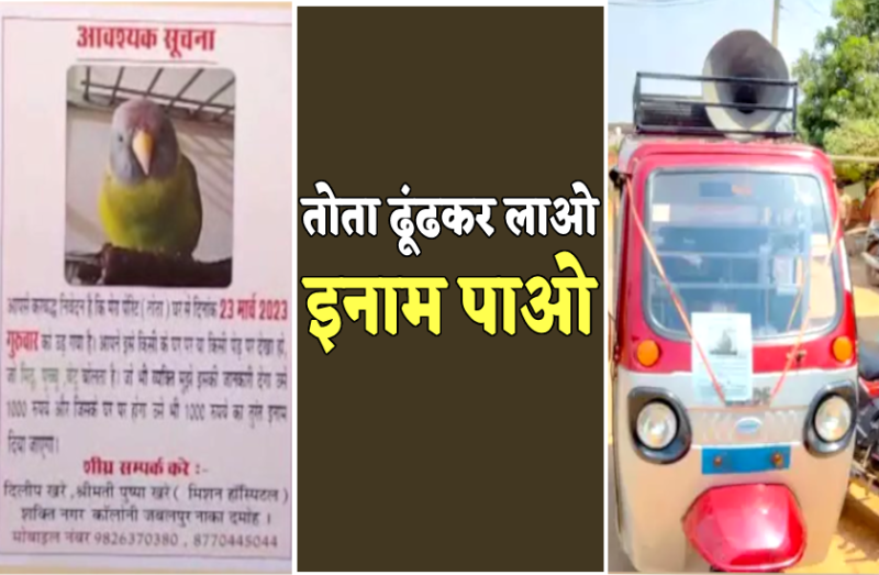 यही नहीं, शहरभर में पोस्टर चस्पा करने वाले तोता पालक परिवार के सदस्य शहरभर में ऑटो में बैठकर माइक पर एनाउंसमेंट भी करते दिखाई दे रहे हैं। लोगों से तोते के संबंध में पता लगाने की मिन्नते करते दिख रहे हैं। यही नहीं, तोते को खोजने वाले को बकायदा 1000 रुपए का इनाम देने की बात भी कही गई है।