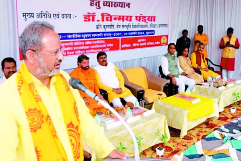 दमोह. पीएम कॉलेज ऑफ एक्सीलेंस कॉलेज में भारतीय ज्ञान परंपरा पर व्याख्यान का आयोजन किया गया। जिसमें राज्य अतिथि देव संस्कृति विश्वविद्यालय हरिद्वार के प्रतिकुलपति डॉ. चिन्मय पंड्या ने बतौर मुख्य अतिथि मौजूद रहे। कार्यक्रम का शुभारंभ गायत्री माता के चित्र के समक्ष दीप प्रज्ज्वलित कर किया गया। इस मौके नशामुक्ति के लिए सभी को शपथ दिलाई गई।