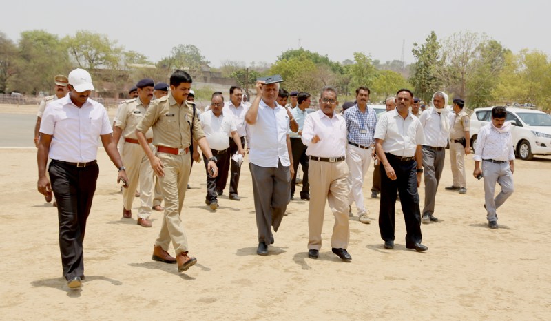 कार्यक्रम स्थल का निरीक्षण करते अधिकारी