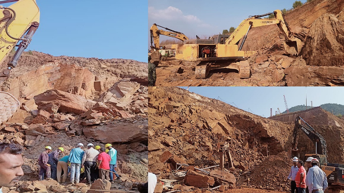 Kirandul (Bailadila) News: एनएमडीसी क्षेत्र में निर्माणाधीन स्क्रीन प्लांट- 3 साइट पर मंगलवार दोपहर तीन से साढ़े तीन बजे के बीच एक भीषण हादसा हुआ। (NMDC) यहां पहाड़ी का एक बड़ा हिस्सा धसक जाने से उसके नीचे सात मजदूर दब गए। इनमें 4 मजदूरों की मौत हो गई। जबकि तीन अपनी जान बचाने में सफल रहे। (Labours Died) यह हादसा तब हुआ जब इस साइट पर पहाडि़यों को तोड़ने के लिए रॉक ब्रेकर का उपयोग किया जा रहा था। (NMDC) इस मशीन का नोजल पहाडि़यों को तोड़ने का काम करता है। (NMDC) काम करते वक्त इसके नोजल के कंपनी से पहाड़ी में दरार आ गई, यह दरार इतनी फैल गई की पहाड़ी का एक बड़ा हिस्सा धंसक गया। (Labours Died) इस हिस्से के धसकने के साथ ही इस काम में लगी हुई यह हैवी मशीन भी लुढ़कती हुई पचास फीट नीचे गिर गई। (NMDC) मशीन के गिरने से चट्टान का हिस्सा भी सरकता हुआ नीचे आ गिरा।