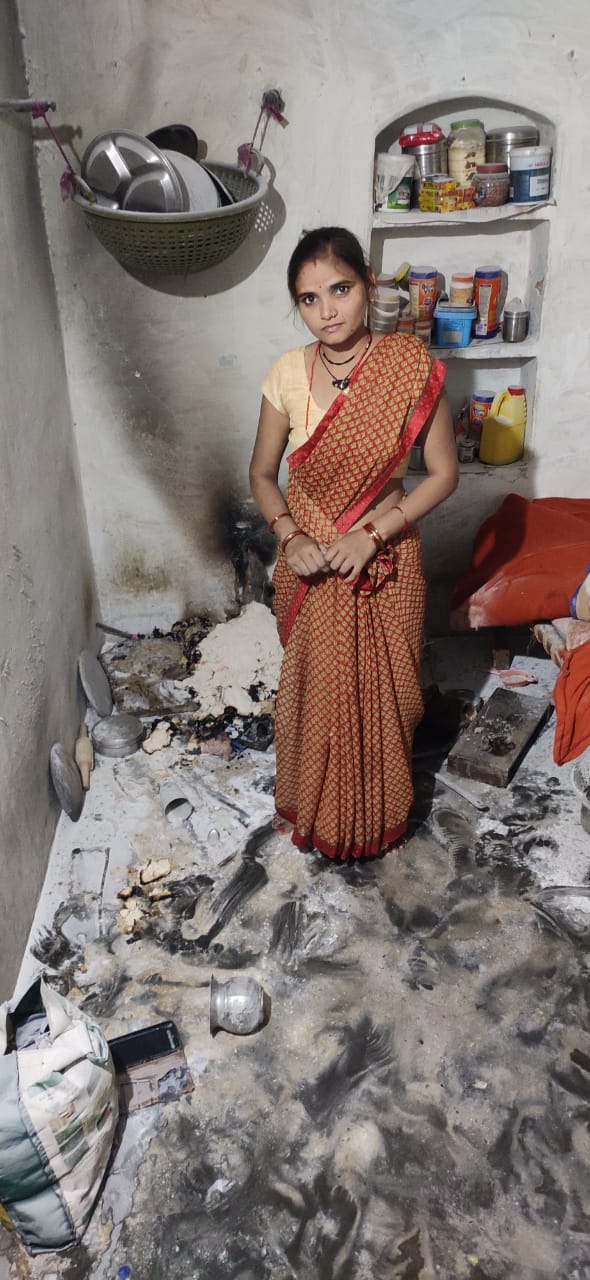 गैस सिलेंडर लीक होने से लगी आग, गृहस्थी का सामान जला