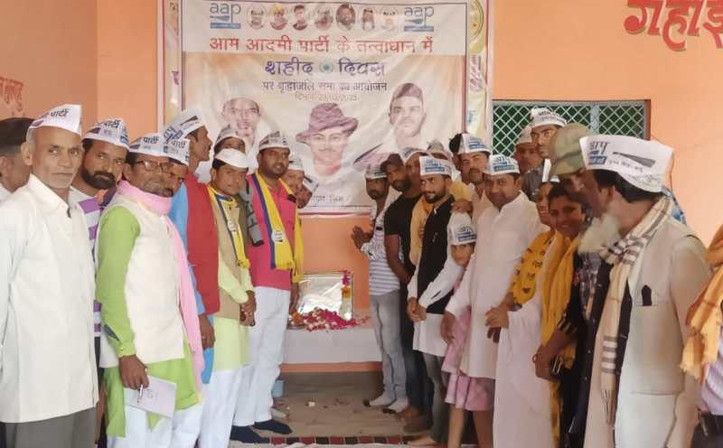 इंदरगढ़। आम आदमी पार्टी के द्वारा भारत के महान क्रांतिकारी भगत सिंह, सुखदेव एवं राजगुरू के शहीद दिवस को लेकर नगर के गहोई धर्मशाला में श्रद्धांजलि सभा का आयोजन किया गया।