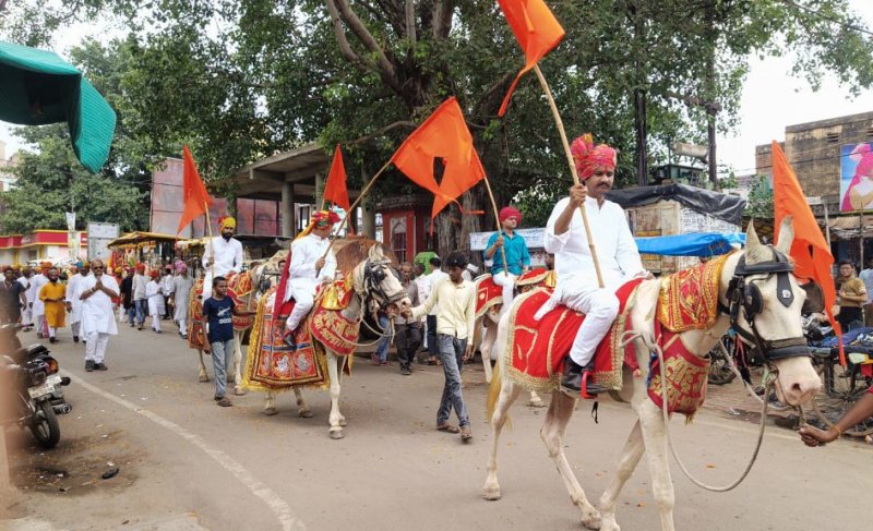 घोड़े पर सवार धर्म ध्वजा लेकर निकले क्षत्रिय