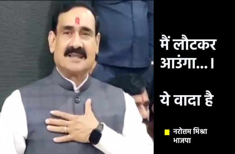 नरोत्तम मिश्रा का यह वीडियो सोशल मीडिया पर वायरल हो रहा है। नरोत्तम मिश्रा कह रहे हैं कि क्या हार में क्या जीत में किंचित नहीं भयभीत में। कर्म पथ पर जो भी मिला, यह भी सही है, वह भी सही है। मैं लौटकर आउंगा यह वादा है।