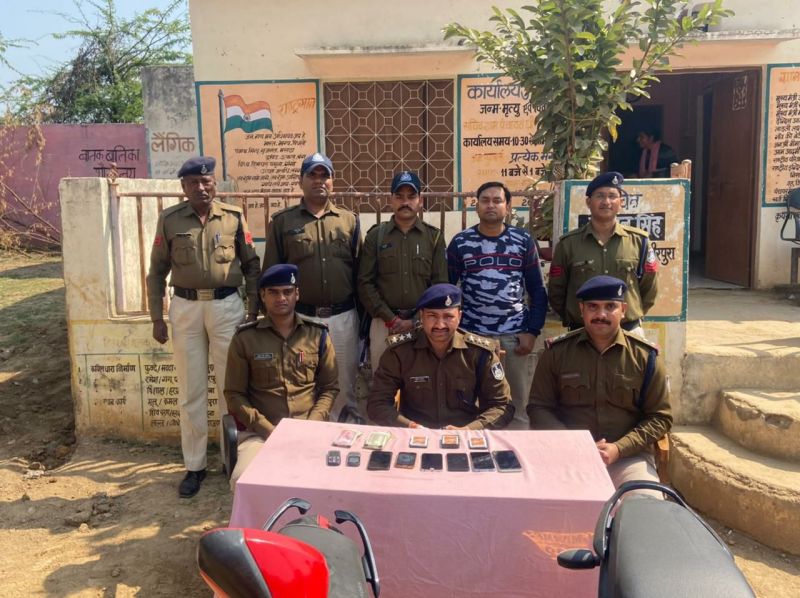 खेत में झाडियों के पीछे छिपकर देखा तो कुछ लोग हार जीत का दांव लगाकर जुआ खेलते दिखे। सूचना पर पूर्ण इत्मिनान होने पर हमराही फोर्स की मदद से जुआ खेलते व्यक्तियों को पकड़ा गया। साथ ही 70 हजार रूपये नगद व 8 मोटर साईकिले , एक अल्टो कार कीमती 250000 रूपये व एक ताश की गड्डी जब्त की गई।