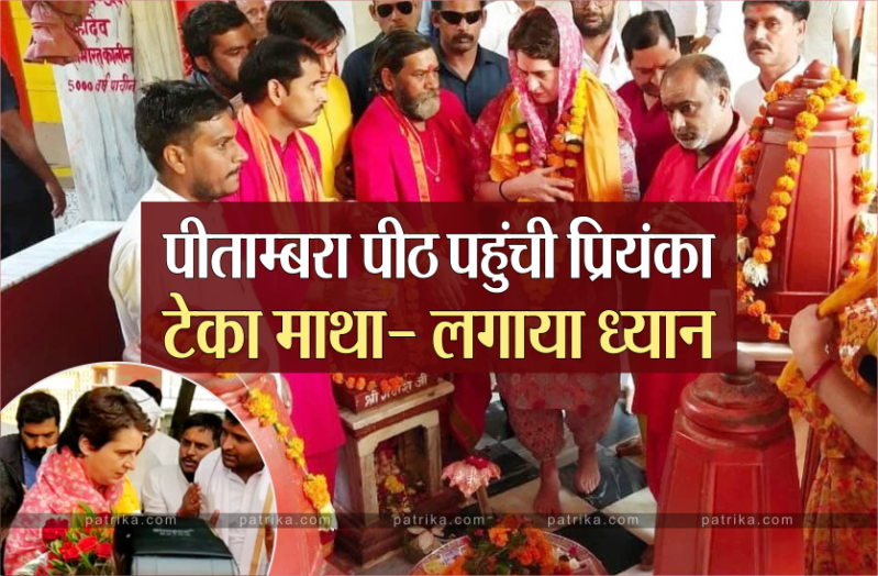 कांग्रेस नेता प्रियंका गांधी दोपहर करीब 2:00 बजे दतिया पहुंची। दतिया हवाई पट्टी से वे विश्व प्रसिद्ध तांत्रिक शक्ति पीठ मां पीतांबरा मंदिर में पहुंची और यहां विशेष पूजा अर्चना की. गर्भगृह में न जाकर उन्होंने बाहर से ही आम श्रद्धालुओं की तरह मां पीतांबरा के दर्शन किए. उन्होंने दोनों हाथ जोड़कर माता से आशीर्वाद मांगा.