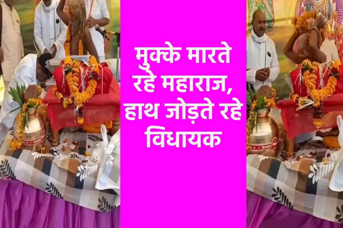 MLA Pradeep Agarwal -एमपी के एक विधायक इलाके में चल रही कथा में पहुंचे। उन्होंने आशीर्वाद लेने कथावाचक का झुककर अभिवादन किया लेकिन यह क्या…कथावाचक ने विधायक को दनादन मुक्के मारना चालू कर दिया। उनकी लाई फूलमाला भी फेंक दी। मुक्के खाने और माला फेंकने के बाद भी विधायक, कथावाचक के समक्ष हाथ जोड़कर खड़े रहे। इस नजारे को देख लोग हतप्रभ रह गए। बाद में मालूम चला कि कथावाचक, जिन पर विशेष कृपा रखते हैं उन भक्तों को इस तरीके से ही आशीर्वाद देते हैं। यह पूरा घटनाक्रम कैमरे में कैद हो गया और अब इसका वीडियो खूब वायरल हो रहा है।