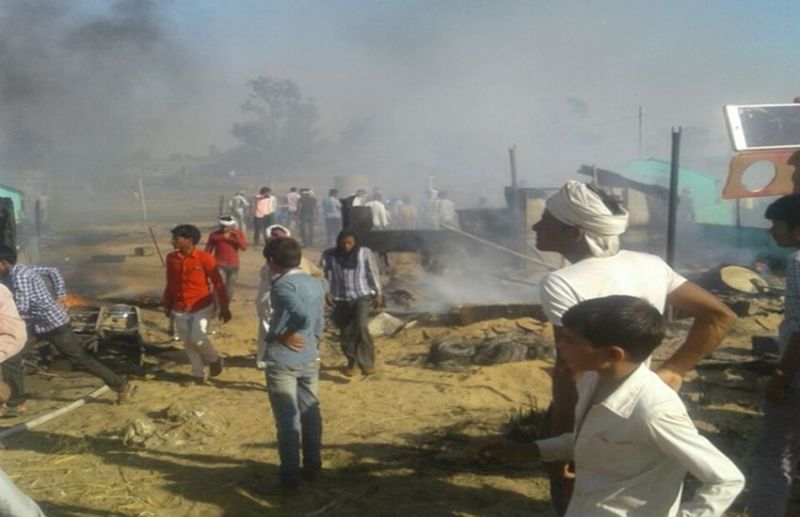 लालसोट. उपखण्ड के जयसिंहपुरा गांव में आग लगने की एक भीषण घटना में 14 छप्पर जलकर राख हो गए। इससे यूपी से यहां आकर बाड़ी करने वाले लोगों के लाखों रुपए नकद एवं सामान जल गया। सूचना पर पहुंची दमकल ने करीब आघे घण्टे की मशक्कत कर आग पर काबू पाया। मिली जानकारी के अनुसार अब्दुल सईद, सत्तार, गफ्फार, उमरदीन,कमरुद्दीन, अजरुद्दीन, जमालुद्दीन, मोहम्मद सगीर, कासिम, इमरान व हमीर के 14 छप्परपोश आग में पूरी तरह जल गए। पीडि़तों ने बताया कि अज्ञात कारणों से लगी आग ने कुछ ही देर में सभी छप्परपोश को अपने आगोश में ले लिया।