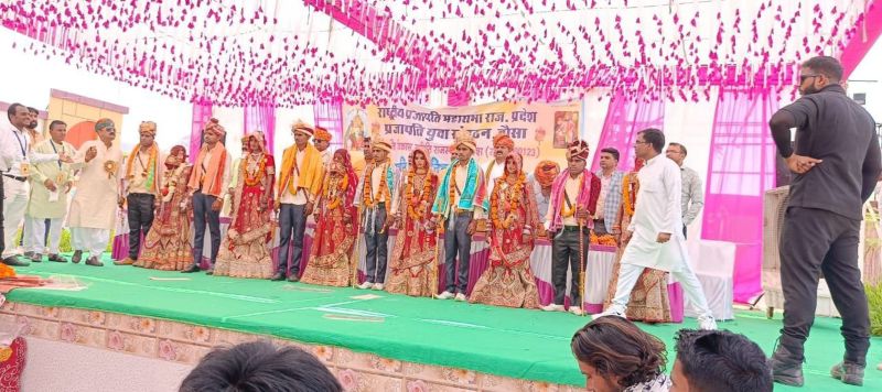 बैण्ड-बाजों के साथ दूल्हों के साथ बारात रवाना होकर शहर के मुख्य मार्गो से होते हुए विवाह स्थल पहुंची। जहां तोरण की रस्म अदायगी के बाद वरमाला कार्यक्रम हुआ। इसके बाद पण्डितों ने रीति-रिवाज के साथ पाणिग्रहण संस्कार संपन्न कराया। इस अवसर पर कार्यक्रम अध्यक्ष महेंद्र चौधरी, युवा अध्यक्ष गिरिराज प्रजापति, गंगाराम प्रजापति, एडवोकेट सुरेंद्र लामा, जिला खाद्य निरीक्षक मुकेश प्रजापत, डॉ. बनवारी लाल, राम खिलाड़ी महुवा, राकेश, महेंद्र, चिरंजीलाल, कालूराम, हरिमोहन, विजय सलावद, मिश्रीलाल सिकराय, रामजीलाल छारेड़ा, पप्पू, रमेश आंधी, पन्नालाल, सीताराम, मोनू, सोनू, हरभजन, हंसराज सहित अन्य मौजूद रहे। कार्यक्रम का संचालन कवि कैलाश सुमा और दिनेश तूफानी ने किया।