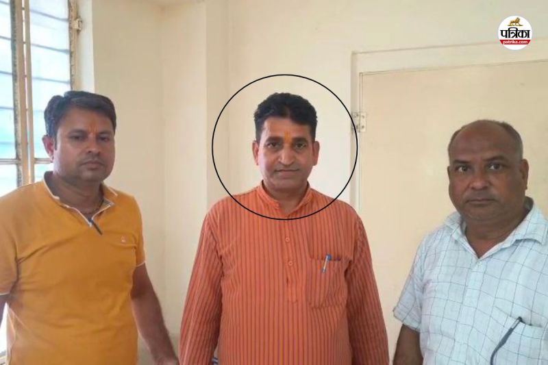 एसीबी टीम की गिरफ्त में आरोपी प्राचार्य। फोटो: पत्रिका