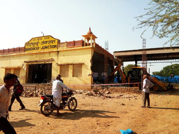 बांदीकुई. रेलवे स्टेशन के द्वितीय प्रवेश द्वार (सिकंदरा रोड) पर स्थित प्लेटफॉर्म छह पर शीघ्र यात्रियों के लिए समुचित सुविधाएं मुहैया हो सकेंगी। इसके लिए रेलवे की ओर से द्वितीय प्रवेश द्वार को ध्वस्त कर नए सिरे से निर्माण किया जाएगा। इसके लिए गुरुवार को जेसीबी से टिकिट खिड़की एवं यात्रि प्रतीक्षालय को तोडऩे की कार्रवाई शुरू कर दी गई है। वहीं रेलवे ने अस्थाई रूप से टीनशेड डाल कर टिकट खिड़की एवं यात्री प्रतीक्षालय का निर्माण भी कर दिया है। इसमें अस्थाई टिकिट खिड़की के साथ ही टिकिट वेंडिंग मशीन भी शिफ्ट कर यात्रियों को टिकिट जारी करना भी शुरू कर दिया गया है।
