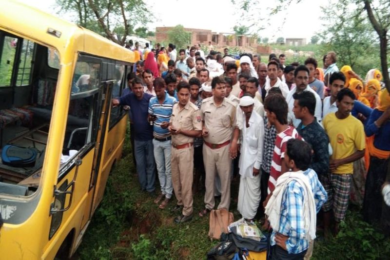 चीखते-पुकारते बालकों को छोड़कर भागा चालक