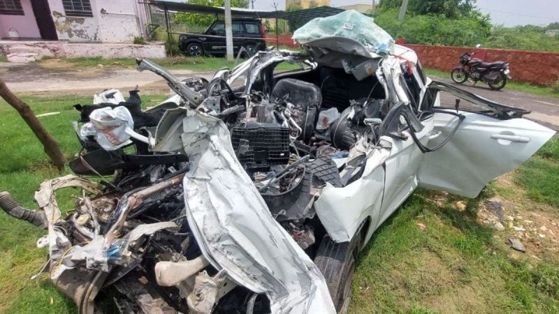 दुर्घटनाग्रस्त कार। फोटो पत्रिका