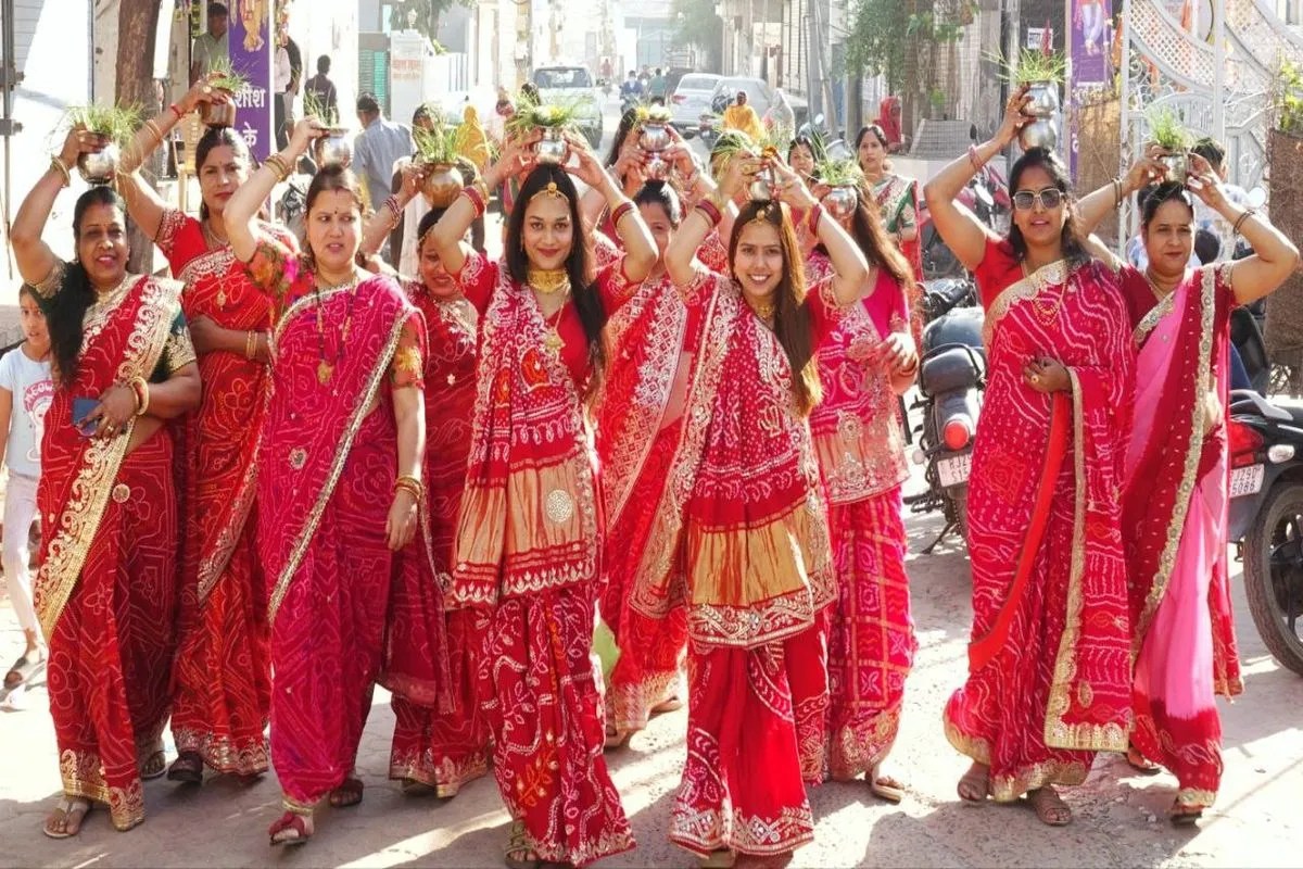 दौसा में गणगौर पूजन के लिए जाती महिलाएं।