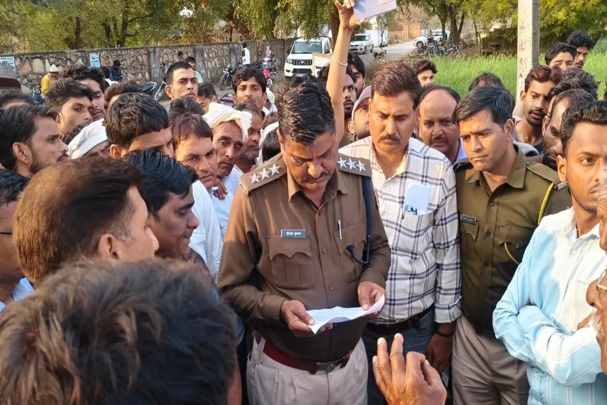 बाद में शव को पांच घंटे बाद परिजन चिकित्सालय छोड़कर अपने गांव चले गए, जिससे पुलिस के हाथ-पैर फूल गए। जहां नौरंगवाड़ा चौराहे पर ग्रामीण जाम लगाकर धरने पर बैठ गए। जाम के चलते वाहनों की लंबी कतार लग गई। बाद में प्रशासन की समझाइश पर एवं मांगों का ज्ञापन सौंप कुछ लोग पोस्टमार्टम के लिए राजी हो गए और धरना खत्म कर बांदीकुई के लिए रवाना हो गए।