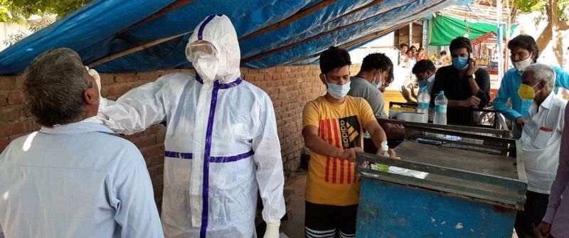 लालसोट में ठेला संचालकों की कोरोना जांच करते चिकित्साकर्मी।