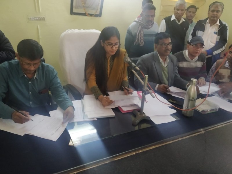 बांदीकुई उपखण्ड अधिकारी कार्यालय में उप जिला कलक्टर पिंकी मीणा व तहसीलदार ओमप्रकाश गुर्जर की मौजूदगी में सरपंचों के पदों के लिए लॉटरी निकालते हुए।