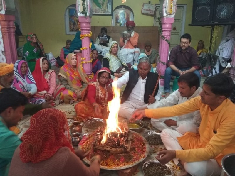 बांदीकुई के राधावल्लभजी महाराज के पाटोत्सव आहुतियां देते श्रद्धाल।ु