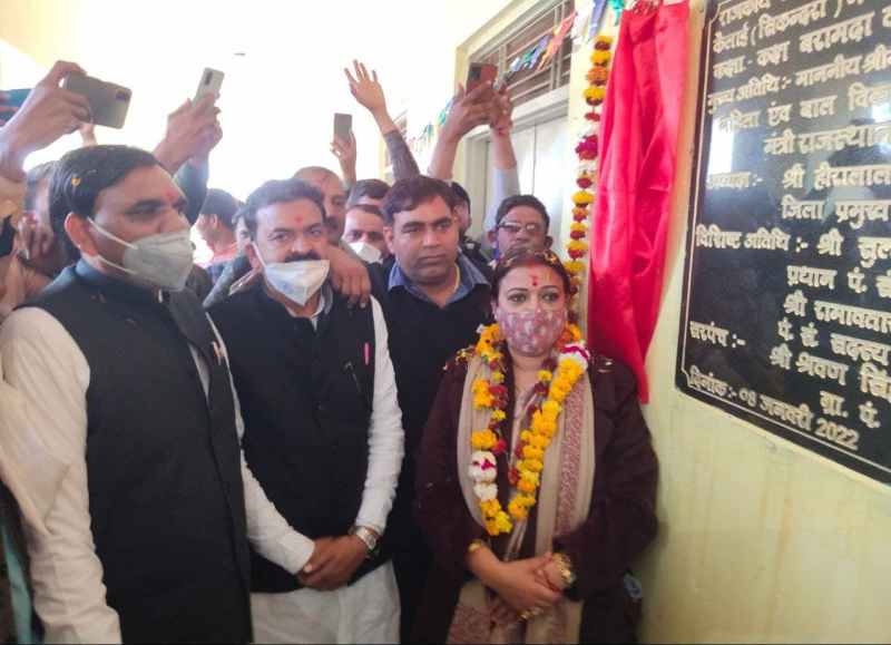 दौसा. कैलाई गाव विद्यालय में कक्षों का लोकार्पण करते मंत्री ममता भूपेश।