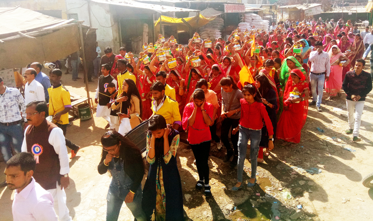 बांदीकुई. विजयवर्गीय समाज की ओर से बुधवार को श्रीरामचरण महाराज की जयंती खण्डेलवाल समाज भवन में हर्षोल्लास के साथ मनाई गई। दोपहर 11 बजे भव्य शोभायात्रा निकाली गई। जो कि खण्डेलवाल समाज भवन से रवाना होकर गल्र्स स्कूल रोड, माधोगंज मण्डी, राज बाजार, पीडब्ल्यूडी तिराहा, अस्पताल रोड होते हुए शहर के प्रमुख मार्गो से होकर गुजरी। शोभायात्रा में महिलाएं सिर पर मंगल कलश रखकर भजन गाते हुए चल रही थी। पुरुष श्रद्धालु जयघोष लगाते हुए चल रहे थे। रामचरण महाराज की आकर्षक झांकी सजाई गई।