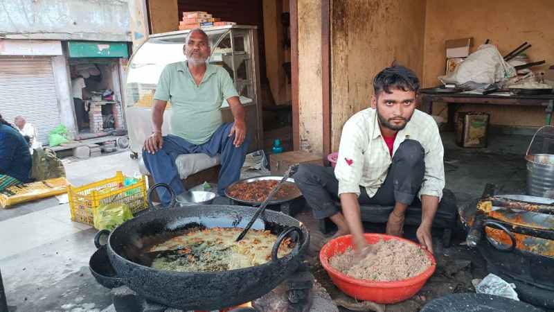 सिकंदरा गांव में दाल की पकौड़ी बनाते मोहनलाल।