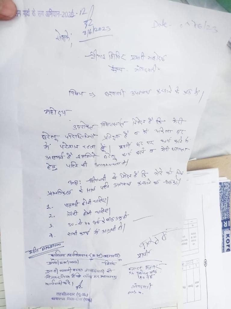 अनूठा मामला: महंगाई राहत कैंप में की पत्नी दिलवाने की मांग, तहसीलदार ने लिखा अत्याश्यक