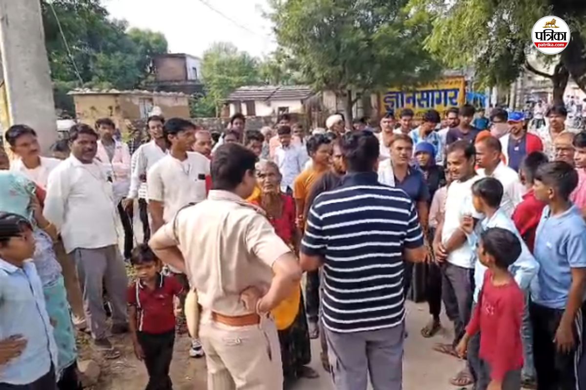 स्कूल में हंगामा करते ग्रामीण। फोटो: पत्रिका