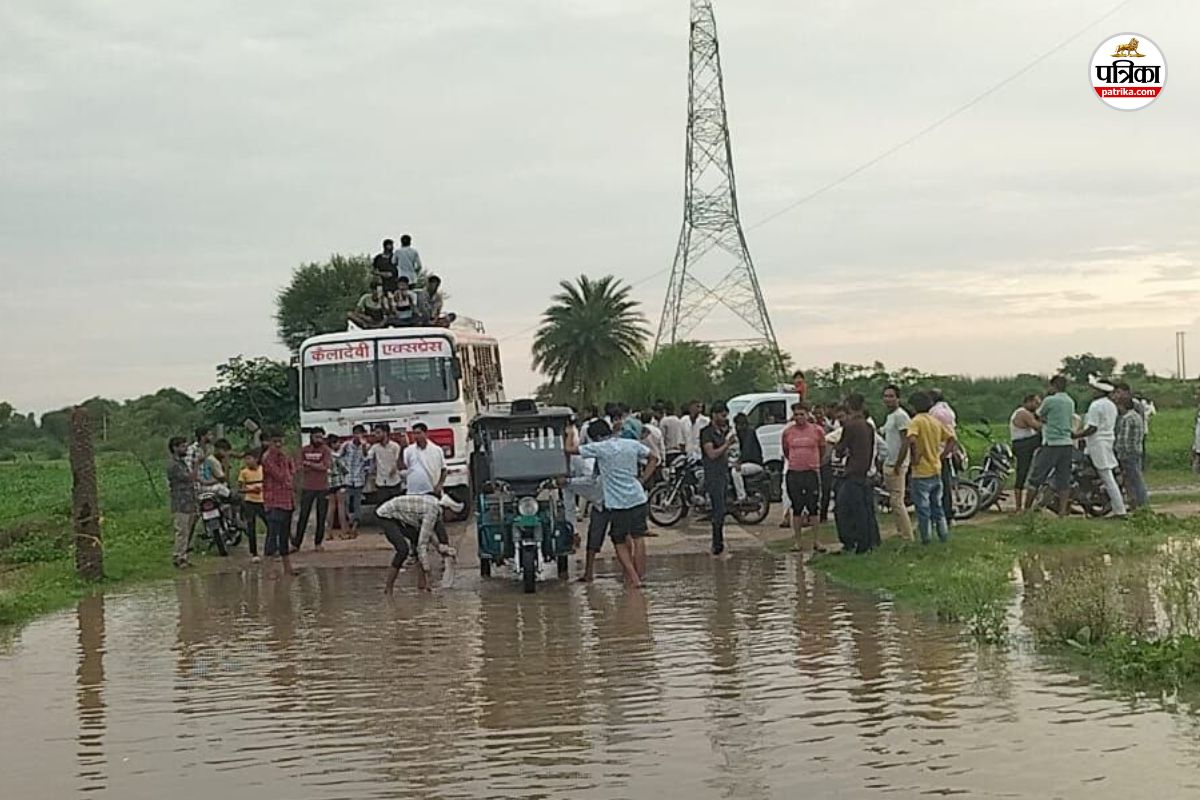 मोरेल नदी में पानी का स्तर बढ़ने से सड़क मार्ग बंद। फोटो: पत्रिका