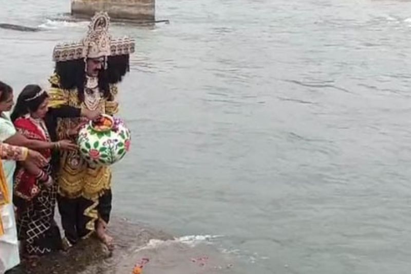 राजस्थान के जयपुर से आए कर्मयोगी रावण ने हरिद्वार में अस्थि विसर्जन किया