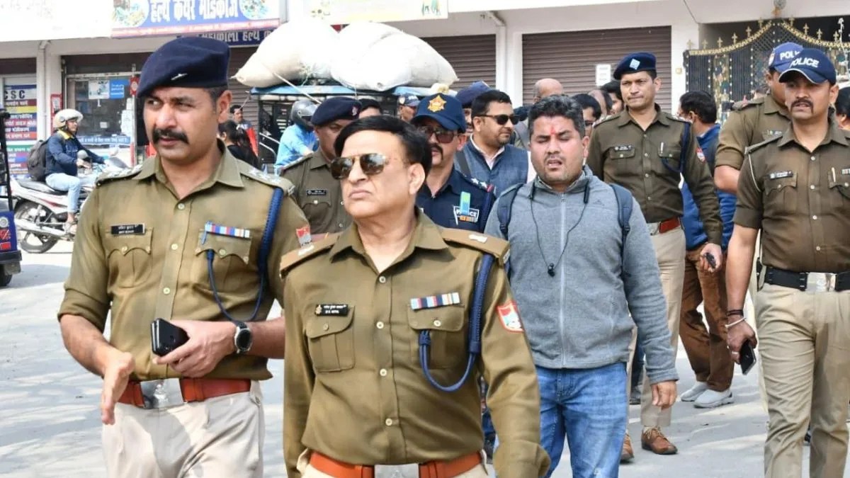 हल्द्वानी में पुलिस ने फ्लैग मार्च निकाला। फोटो सोर्स पुलिस मीडिया सेल