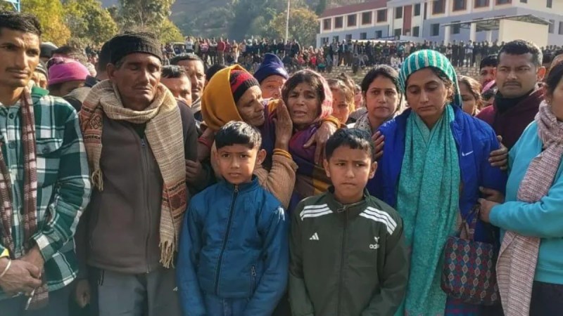 कपकोट में शहीद गजेंद्र सिंह के अंतिम दर्शन करते परिजन और अन्य लोग