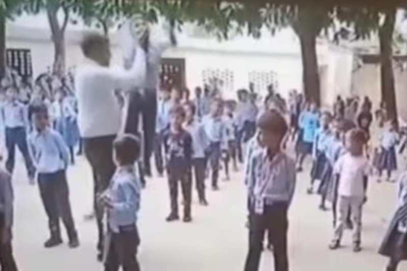 सोशल मीडिया पर वायरल हो रहे वीडियो में एक शिक्षक एक छोटे बच्चे को गर्दन पकड़ कर टांग देता है और कुछ देर तक हवा में झुलाए रखने के बाद उसे नीचे उतार देता है। इसके बाद सनकी टीचर मासूम के पेट में भी मारता है।इसके बाद पीछे खड़े एक अन्य छात्र की भी पिटाई करता है। यह वीडियो खुखुंदू थाना क्षेत्र के एक प्राइवेट विद्यालय का बताया जा रहा है।