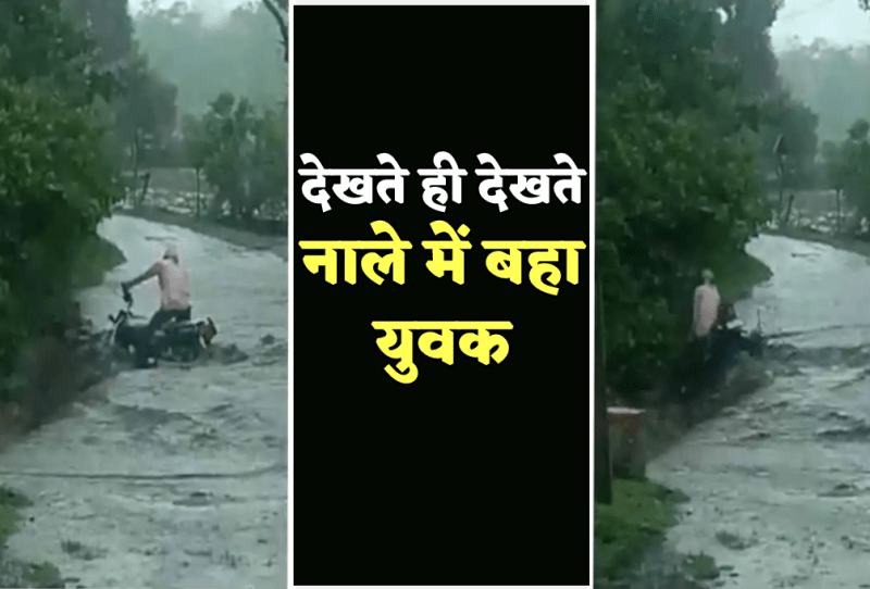 आफत की बारिश : बाढ़ के कारण नाले में बहा बाइक सवार, मच गई चीख पुकार, डरा देगा वीडियो