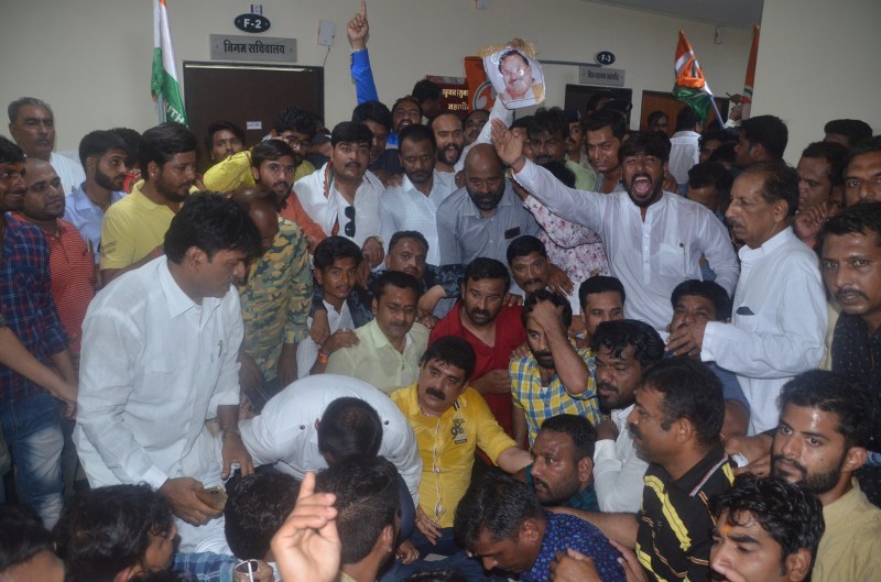 दरअसल सोमवार सुबह करीब ११ बजे कांग्रेसजन जवाहर चौक स्थित कांग्रेस कार्यालय पर एकत्र होना शुरू हुए। यहां से रैली के रूप में शहर में निकले। विरोध प्रदर्शन यूथ कांग्रेस के बैनर तले किया गया जिसमें कांग्रेस नेता शामिल हुए। नारेबाजी करते हुए तहसील चौराहे से टर्न लेकर नगर निगम की ओर मुड़े। कांग्रेसियों के प्रदर्शन के कारण पुलिस ने नगर निगम के सामने कट पॉइंट पर रखे बैरिकेड्स हटाए और कांग्रेसी नारेबाजी करते हुए निगम परिसर में दाखिल हुए। कुछ नीचे खड़े रहकर भाषण देते रहे तो कुछ ऊपरी मंजिल पर महापौर कक्ष के सामने विरोध करते रहे। करीब घंटेभर तक हंगामा चलता रहा। प्रदर्शन में युकां अध्यक्ष हिमत सिंह चावड़ा, जितेंद्र सिंह गौड़, दिग्विजय सिंह झाला, विश्वजीत सिंह चौहान सहित पूर्व महापौर रेखा वर्मा, जयप्रकाश शास्त्री, एम. असलम शेख, सुधीर शर्मा, अजीत भल्ला, जितेंद्रसिंह मोंटू, गुरुचरण सलूजा, राहुल पंवार, रोहित शर्मा, अनिल गोस्वामी, इितयाज शेख भल्लू, दीपेश कानूनगो, चंद्रपालसिंह सोलंकी, मलखानसिंह देवड़ा, धीरज कल्याणे, शबाना सोहेल, ज्योति चितले, वर्षा निगम, हफीज घोसी, राकेश शर्मा, हर्षप्रतापसिंह गौड़, यशवंत कुशवाह सहित बड़ी संया में युवा कांग्रेस एंव कांग्रेसजन उपस्थित थे। आभार रियाज नागोरी एवं अक्षय बाली ने माना।