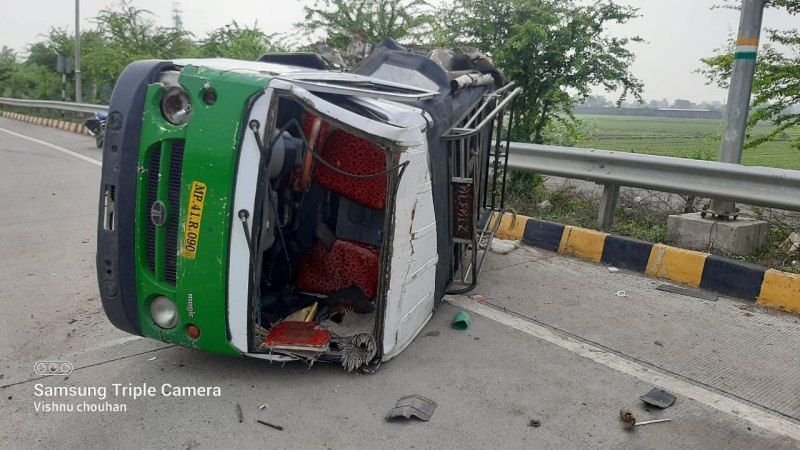 एबी रोड पर हादसा: डेंजर जोन सिया में मिनी ट्रक की टक्कर से पलटा मैजिक वाहन, 3 घायल