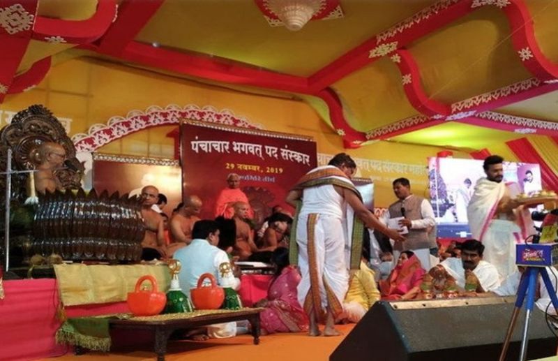 आचार्यश्री - पांच प्रकार की विधियों से भगवान की प्रतिमा को मंत्रित करते हैं। जैसे- एक बीज वृक्ष बनता है। पाषाण कैसे परमात्मा बनाता है...यानी एक जीव कैसे परमात्मा बनता है, उसे हम नाटकीय मंचासन के द्वारा प्रस्तुत करते हैं। यही पंचकल्याणक है।