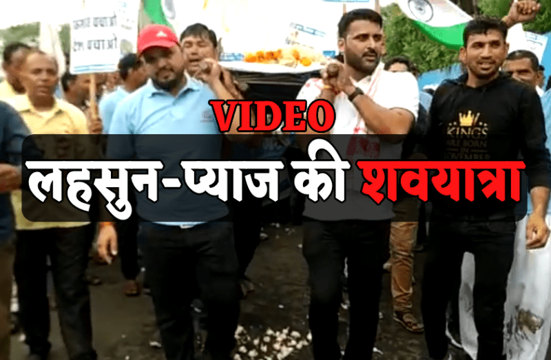 सड़क पर निकली प्याज - लहसुन की शवयात्रा, किसान बोले- कौड़ियों के दाम खरीद रहे व्यापारी