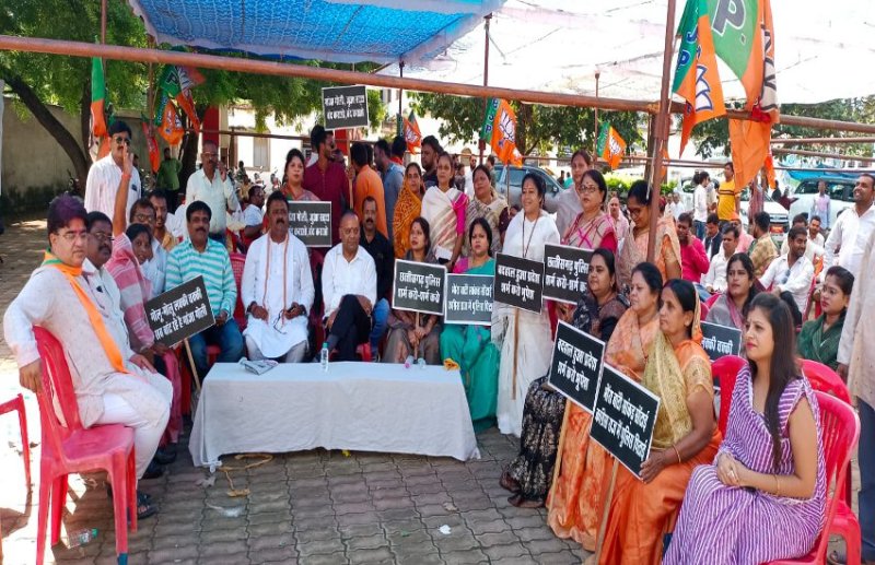 धमतरी. प्रदेश में बिगड़ती कानून व्यवस्था को लेकर भाजपाईयों ने धरना देकर भूपेश सरकार को जमकर कोसा। उनका कहन है कि चार सालों में कांग्रेस सरकार ने प्रदेश को गर्त में धकेल दिया हैं। अब तो कांग्रेस कार्यकर्ता पुलिस को ही पीटने लगी हैं।
