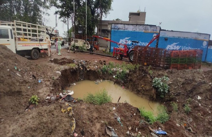 Monsoon Rain In CG:बताया गया है कि 3 महीने पहले यहां पर एक व्यवसाई पेड़ को काटने के लिए गड्ढा खनन कर दिया था जिससे नगर निगम की पाइपलाइन भी छुट्टी हो गई थी । इसके बाद से इस जमीन को पाटा नहीं गया और यही कारण है कि आज हाईटेंशन तार उखड़ गई।