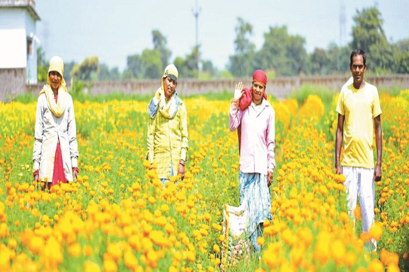खेत के चारों ओर पीले गेंदे की बहार है। इसकी खुशबू अन्य ग्रामीणों को भी प्रेरित कर रही कि परंपरागत खेती छोड़ अन्य फसलों से भी तगड़ी कमाई की जा सकती है। नोमेन्द्र प्रति एकड़ साल में ढाई लाख रु कमा रहा है। नोमेन्द्र ने बताया कि उसने अपने खेत में पानी कम लगने वाले फसल लगाने के बारे में सोचा और गेंदे के फूल की खेती करने का मन बनाया। उद्यानिकी विभाग से सलाह ली।