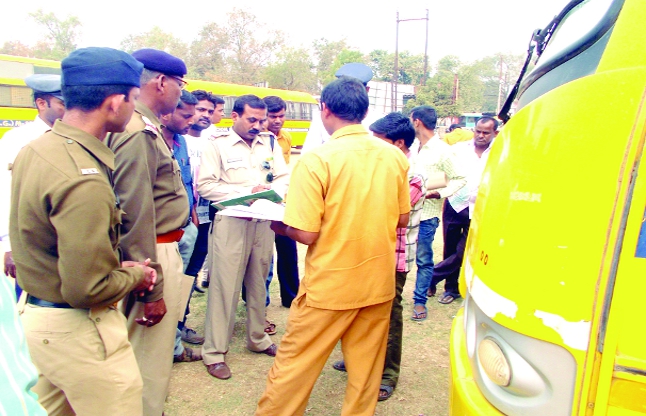 टैफिक इंचार्ज सत्यकला रामटेके ने बताया फिटनेस टेस्ट शिविर में डीपीएस, मॉडल स्कूल, सर्वोदय स्कूल, मेनोनाइट हायर सेकेंडरी स्कूल समेत शहर के विभिन्न स्कूलों के बसों की जांच की गई। इसमें से 9 बसों की हेड लाइट, फस्र्ट-एड-बाक्स, सीज सिलेंडर, पाकेट समेत अन्य उपकरणों में खामियां पाई गई। इन बसों को सिटी कोतवाली लाकर खड़ा कर दिया गया। इसके बाद स्कूल प्रबंधन चेतावनी देते हुए बसों में सुविधाएं बहाल करने की शर्त पर छोड़ दिया गया।